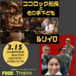 2026/03/15(Sun.) 『ココロック船長とその手下ども ✖︎ ルリイロ LIVE』at 東京/吉祥寺BAOBAB *森田崇允はココロック船長とその手下どもにギターで参加予定です。 【L ...