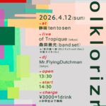 2026.04.12(Sun.) 『folklorizm』 at 静岡 ten to sen -LIVE- of Tropique (東京) 森田崇允〔Band Set〕 -DJ- Mr.Flying ...